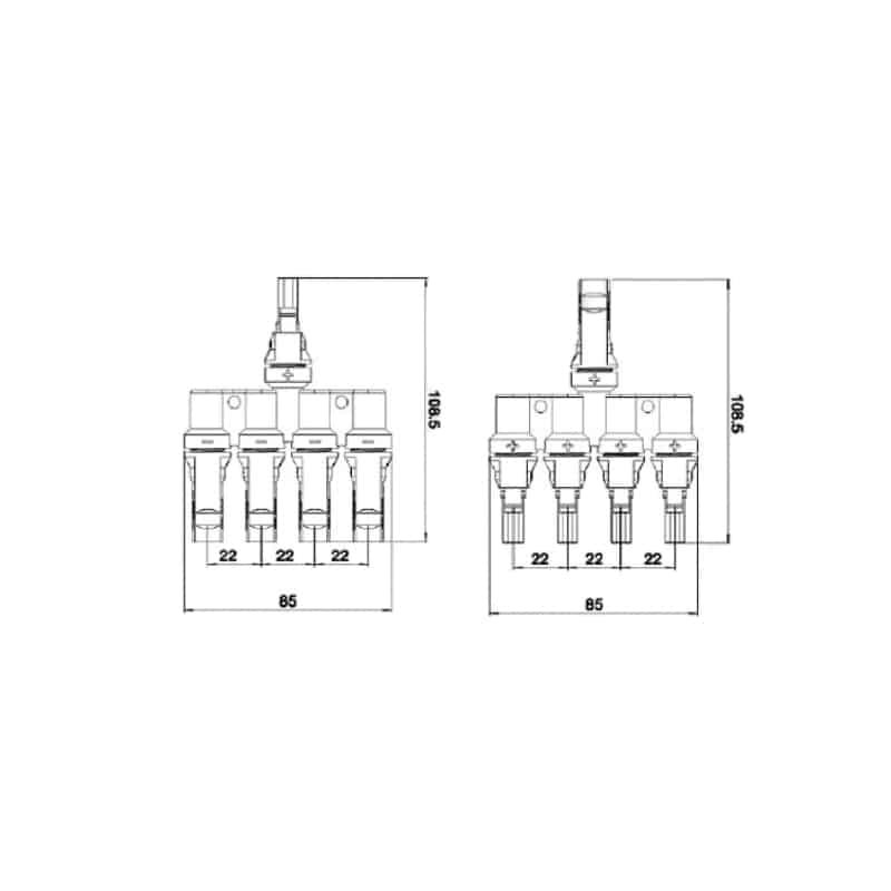 | PV-Y4 | Connecteur en Y (3 à 1) | 30A | 1000V (IEC) / 800V (UL) | 2.5, 4, 6 | La disposition unique à 120° minimise les contraintes sur les câbles | Installations personnalisées nécessitant un acheminement optimisé des câbles. |