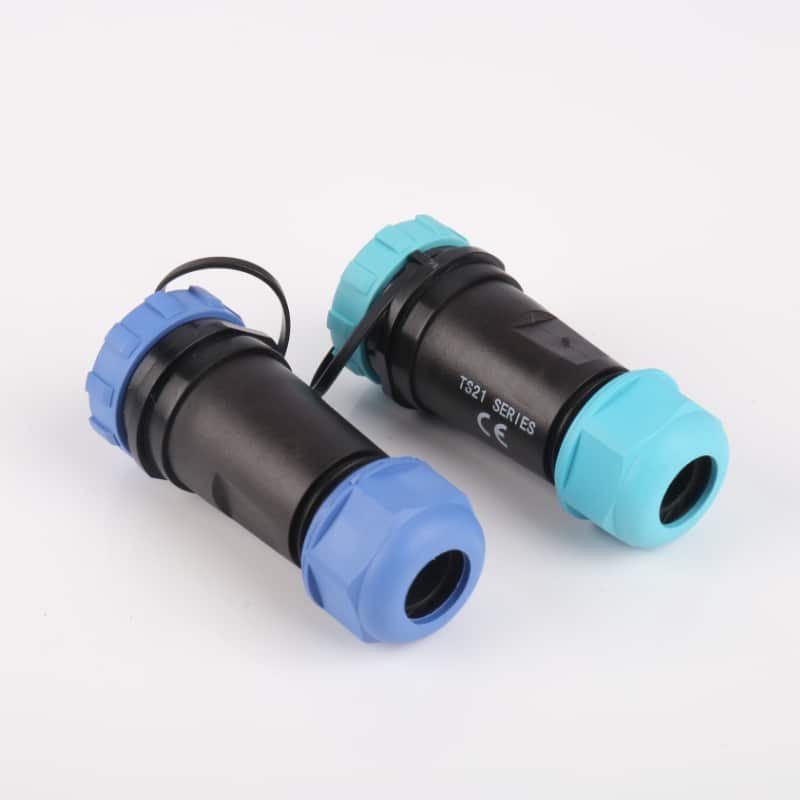A TS21RS aljzat & TS21RP dugó egy robusztus, IP68 szabvány szerinti vízálló, akár 30 A feszültséget is kezelni képes in-line csatlakozót hoz létre. Biztonságos menetes csatlakozóval rendelkezik a nagy igénybevételű áramellátási alkalmazásokhoz.